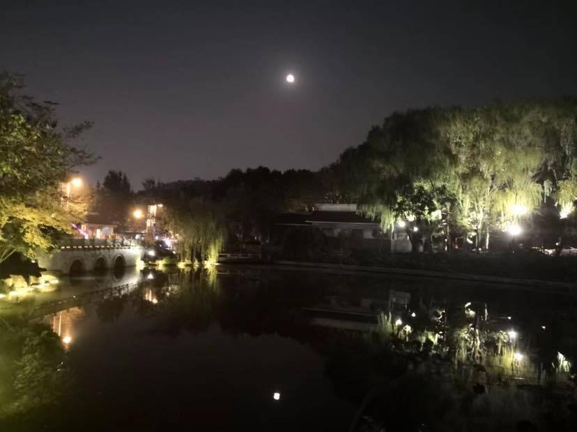杭州,秋夜月明,朋友出差杭州,居然偶遇旧友,图片中秋深的色彩,是不是参杂了她欣喜的感觉?