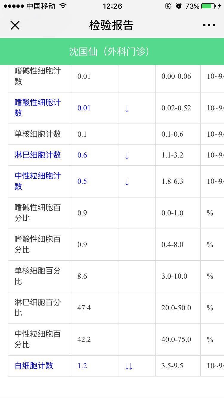 二疗后11天,白细胞只剩1.2了
