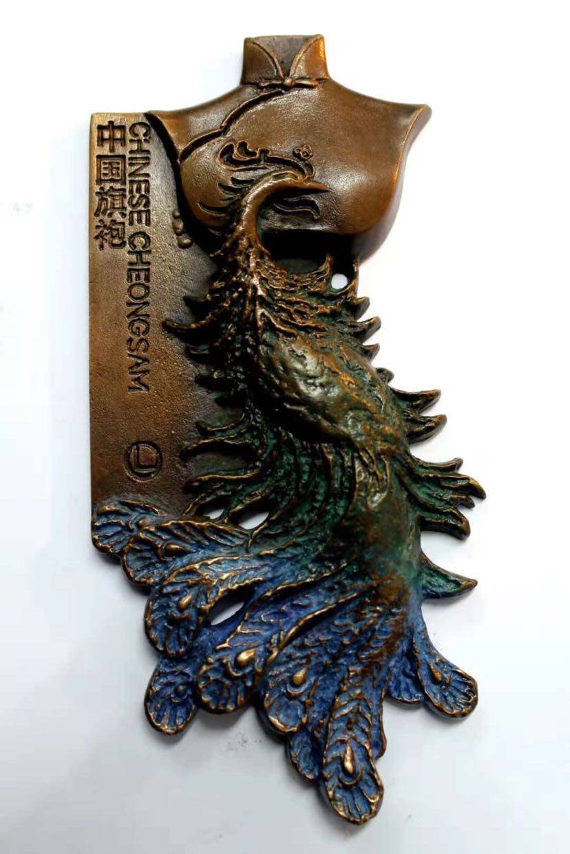 作品由上至下是一个收缩到舒展的转换过程,象征中国妇女地位的不断提高,也象征这个时代的发展和进步。旗袍是一种包裹型的服装样式,有一种束缚感;渐渐舒展的羽毛带来的是一种舒畅和自信,这种收放关系不只是一种审美表达,更是这件作品的真正意义。