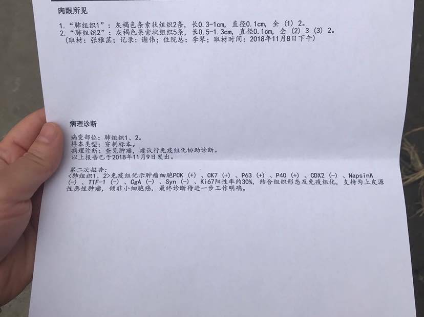 11月8日做的穿刺,16号报告写倾非小细胞癌,到今天20号了还是不知道是腺癌还是鳞癌,心里真的很着急,入院已经马上一个月了。