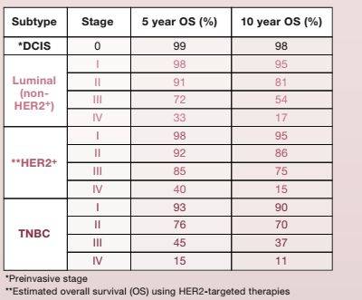 总之,我们谈到乳腺癌的时候,没有必要恐慌,它的整体生存率是很高的,但具体情况需要具体分析,无论分期还是分型,都会对预后有影响。