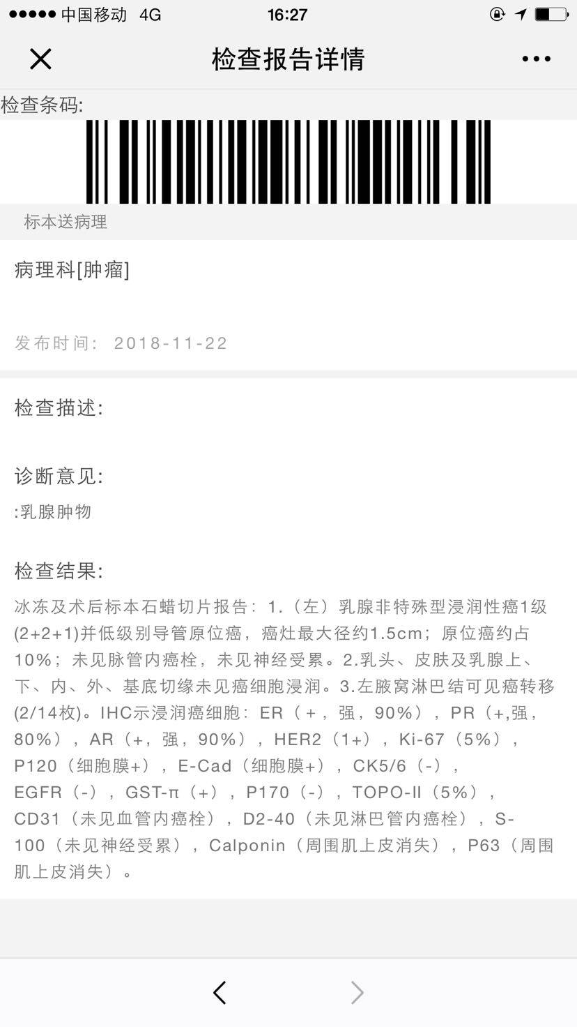 病理和我很像,我的前哨淋巴结没转移,化疗了四次。