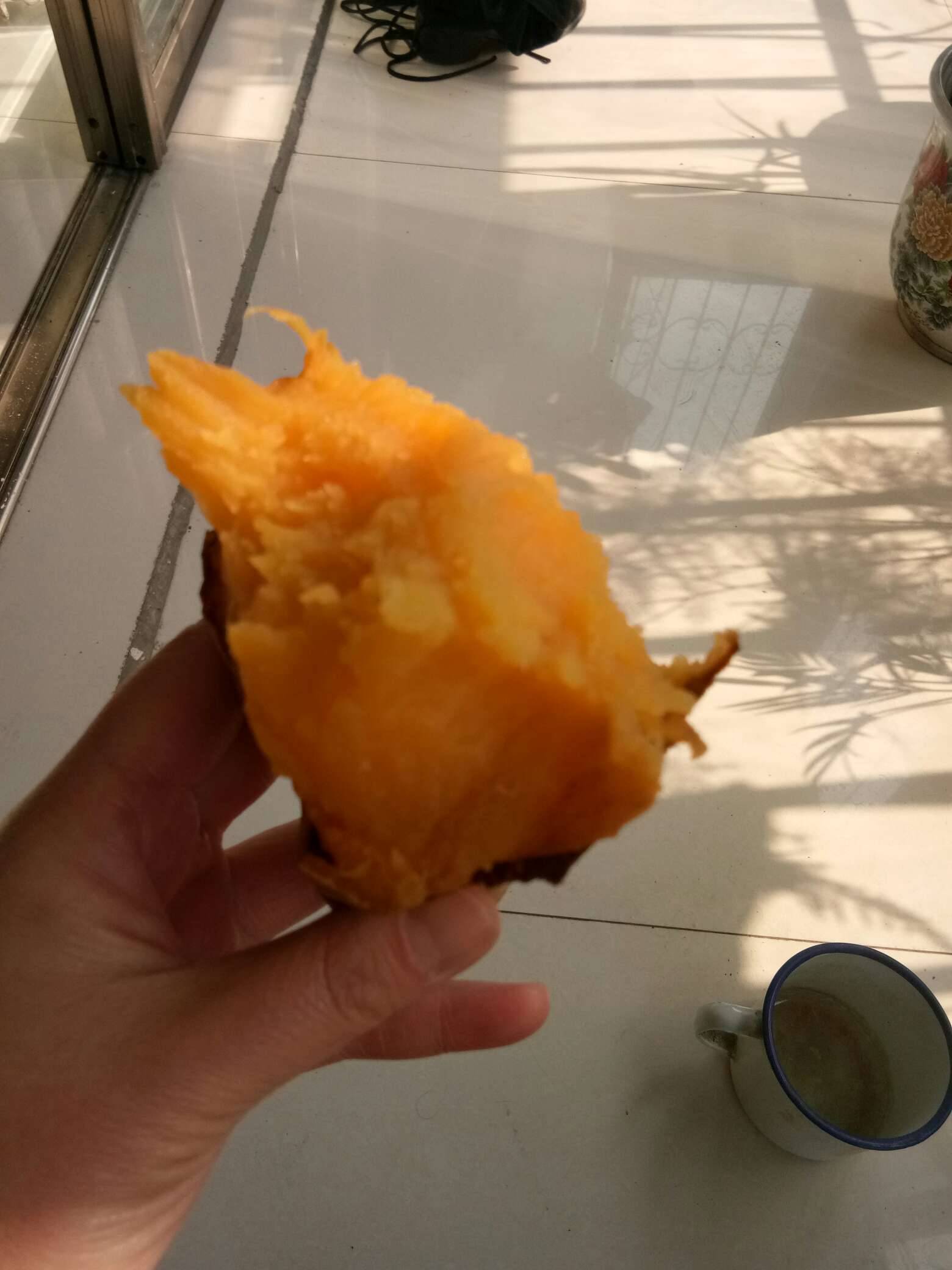 看着就想吃,我有一次和老公出门干活,那个地方正好是地瓜丰收的时候,我买了一个烤地瓜,那一个有你这个三个肥,我一个都吃了,又吃了两个糖馒头。
