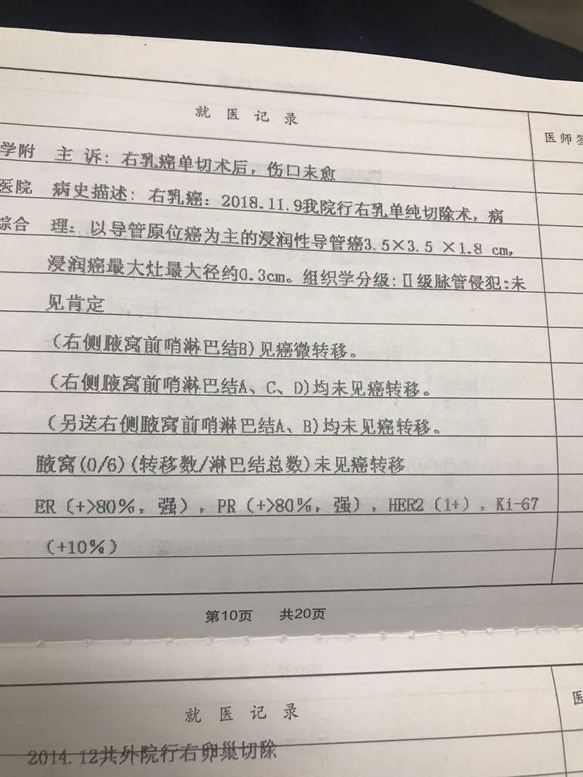 和我病理差不多,前哨一个微转移,化疗四次,内分秘5年