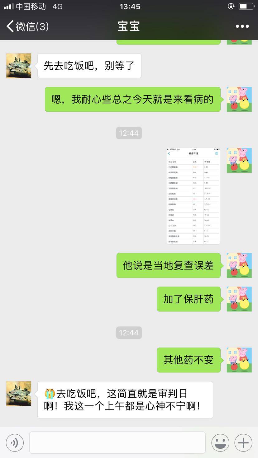 稳定了稳定了,关节也不疼了,激素也停了,例行月月检查,忽然肝损,😢我好几次了,这次不让老公陪我,太耗时间了,我自己可以独立。在医院等,遇到很多病友,有过的好的也有过的不好的,有幸福也有不幸福的。听着谈着心里也不是滋味,我是一个心理素质很差的人,我一直说活得够了,我就自己离开,想想老公对我的好,这种想法也会伤害他,以后不说了
