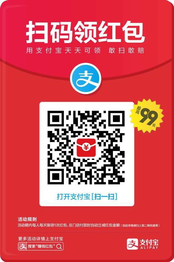 最近被朋友圈刷屏了,支付宝扫一扫领红包咯,买东西可以抵押