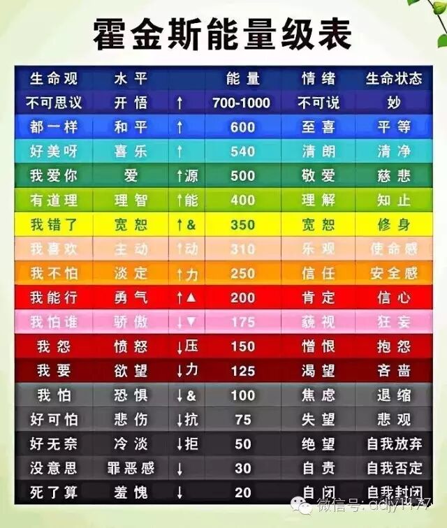 大卫·霍金斯发现,凡是生病的人一般都用负面的意念。人的振动频率如果在200以上就不生病。通常这些病人的振动频率低于200。哪些意念的振动频率低于200?喜欢抱怨、指责、仇恨别人,频率大概只有三四十,不断指责别人过程当中就消减自己很大的能量,所以振动频率低于200。这些人容易得很多不同的疾病。
