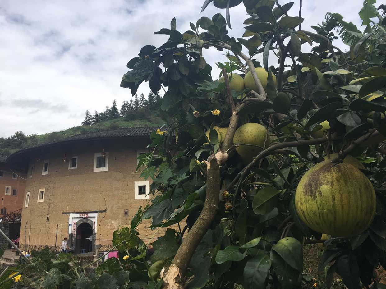 土楼旁边树上绿色的是什么水果