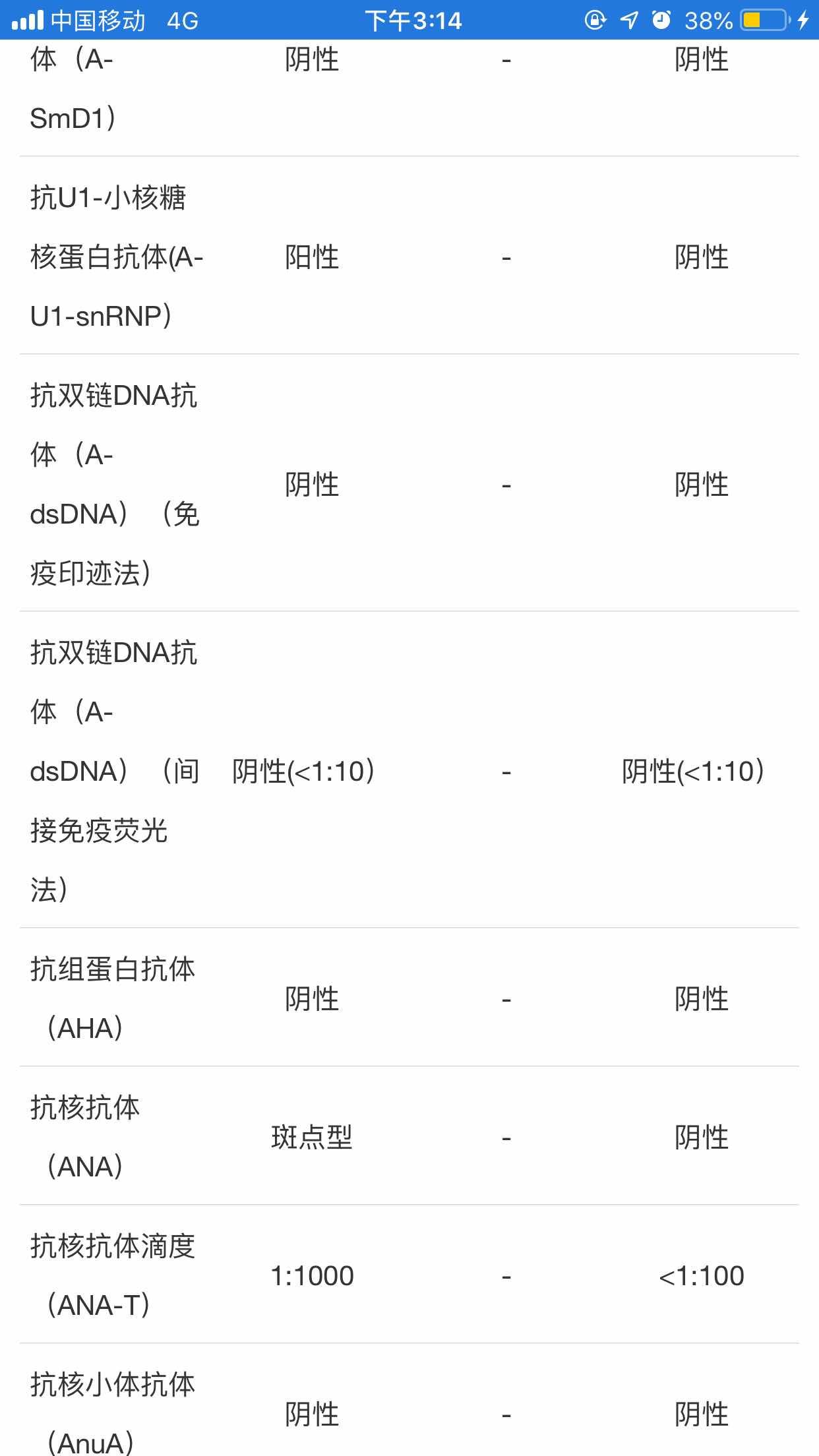抗核抗体滴度终于降了,虽然1:1000还是很高,但是确诊的时候1:3200,上一次六七月份查的时候也还是1:3200,两年半来终于有降,开心开心。除了这一项还有个抗u1-小核糖核蛋白抗体还没转阴。