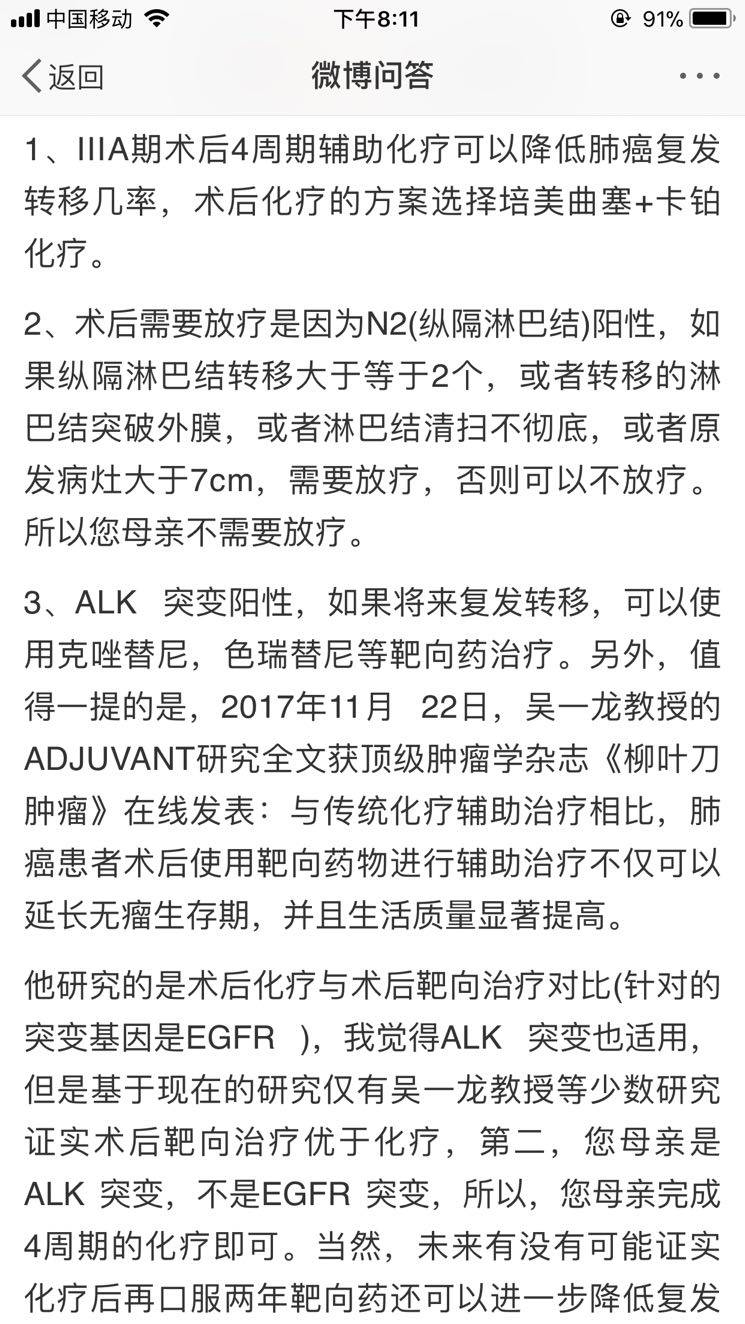 我3A,术后没做,就化疗了4次,放疗了30次,空窗半年,现一直吃靶向药。