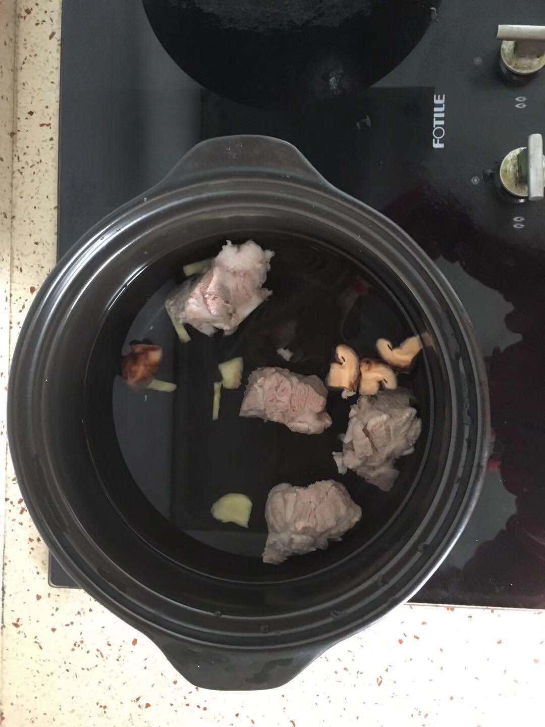 四、烹饪方法:1.将猪骨和剩余姜片、香菇一起放入瓦煲内小火炖半小时。