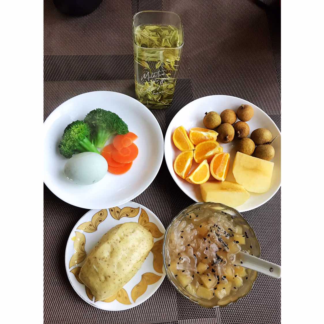 现在终于回到温暖的家🏠,每天的饮食可不敢怠慢,珍惜每一天的存在感,生活当然也要有仪式感,且看我养眼的营养全面的早餐:绿茶,里面加了三颗切成两瓣的清橄榄,口感特好,苹果🍎,西兰花🥦,红萝卜🥕,桂圆,橙🍊,白木耳汤没加糖,加了点苹果块,主食是自己做的南瓜黑麦馒头。