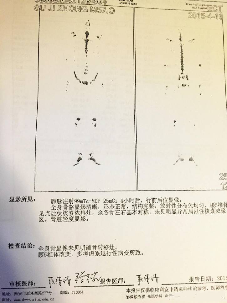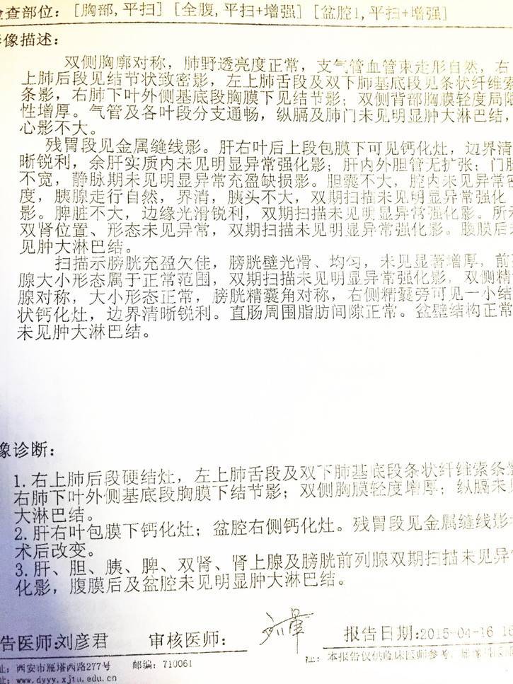 后来做了第一次化疗了 ,做的CT胸扫和腹腔扫,未见异常!核CT未见骨转移。