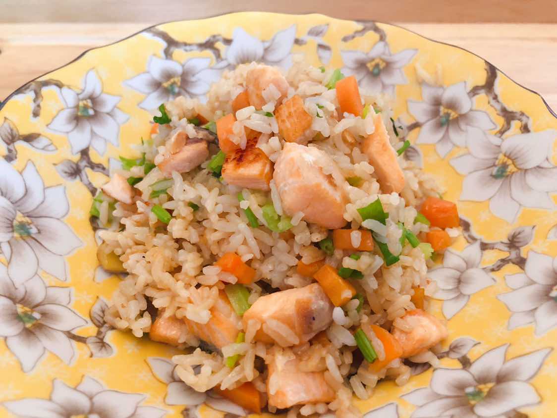 康复期的饮饮食食之”三文鱼波菜红罗卜炒饭