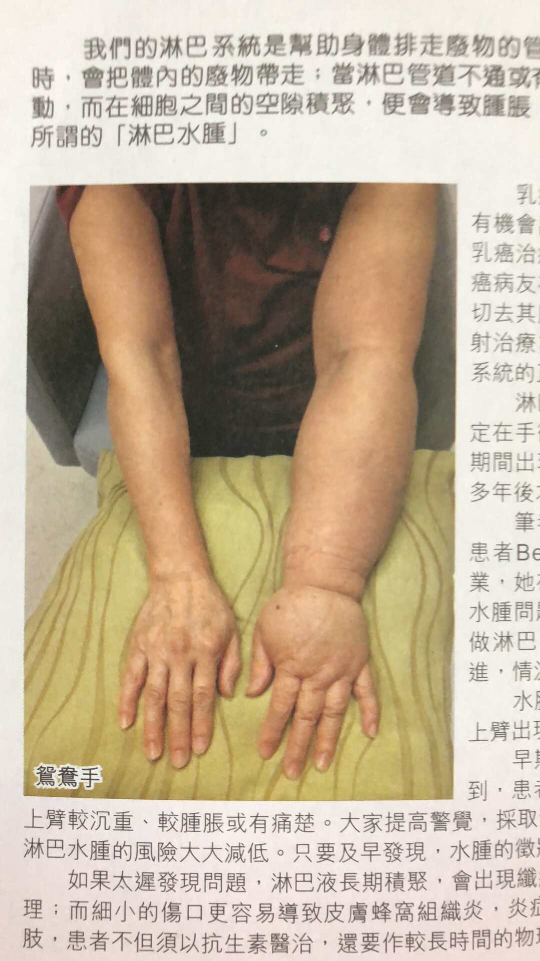 我化疗后,在腋下切除前哨淋巴,发现还有癌细胞,所以在切除10粒淋巴化驗,还好没有感染,但现在天天要做淋巴推水运动,而且切淋巴的手不能拿重的东西,不能長時间重复做一个动作,因怕水肿,下月要量度水肿了,我一直在香港乳癌基金会量度,但想问下姐妹们上海有量度水肿的嗎?那我就不用回港度了!