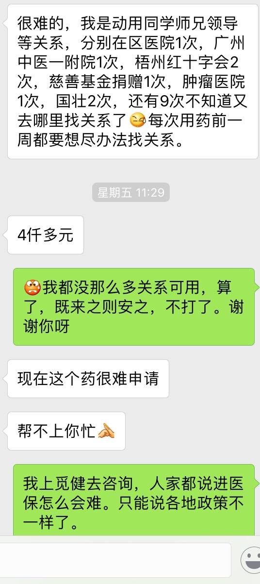 2.治疗的区级三甲医院因为使用人太多,用药超量了,所以医保中心不给进药了,只能是全自费自己从药厂买了拿去那里打。