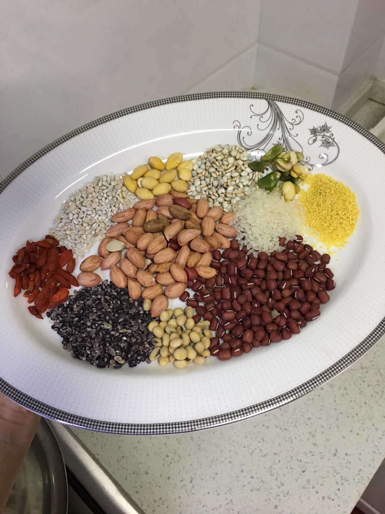 哈哈,我今天也做了,开始不够8种,后来加了夏威夷果,刚看了你的,我想起我也有花生米,我也有黄豆,😄