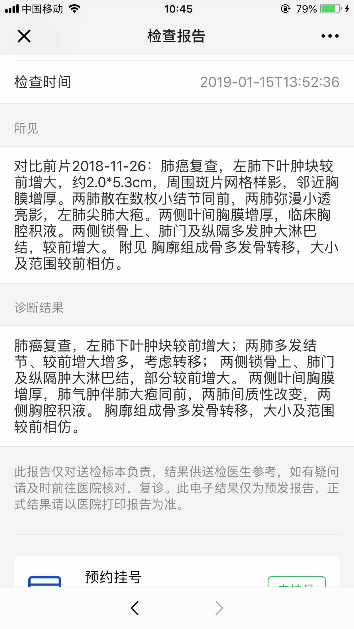 今天把之前的CT片子借出来给的中山医院呼吸科医生看,和医生说了下我们的情况(培美+顺铂化疗了6次 O药挂了四针)医生说看我们的片子不能确定到底是炎症还是免疫治疗的副作用还是肿瘤进展的原因(因为这次CT显示有胸水和多发结节),医生让明天住院做个详细的检查 才能判定到底是哪种情况。