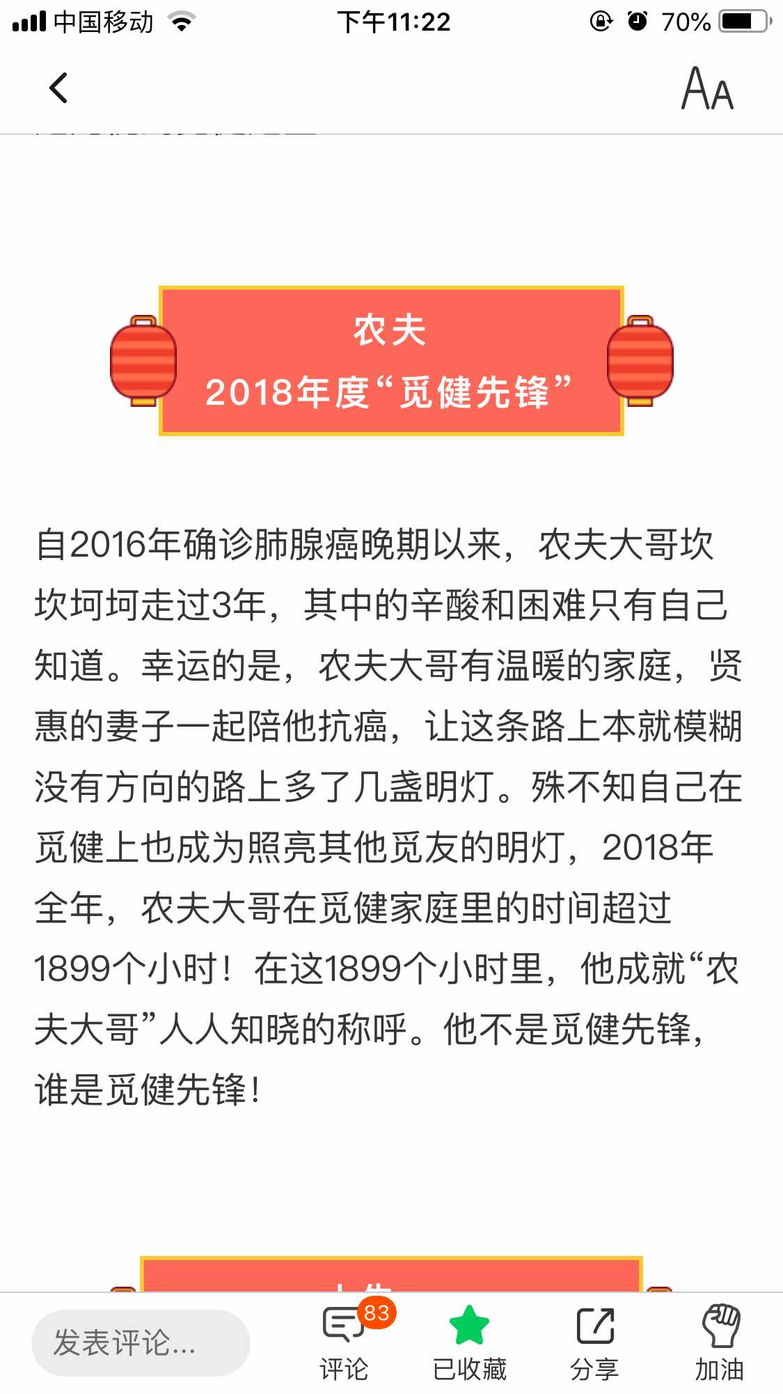 抗癌三年,我已与觅健温暖同行820天,承蒙小鱼版主和众友厚爱,感谢觅健团队支持,在这次"觅健之星"评选活动中,我荣获"觅健先锋"称号。