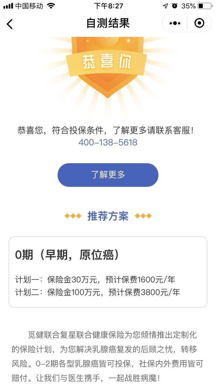 刚咨询了一下根据分期分型不同缴费是不一样的,原位最低,并且这个费用因为有三个月的等待期所以是九个月的,第二年缴费会更高一些,我打算投保了