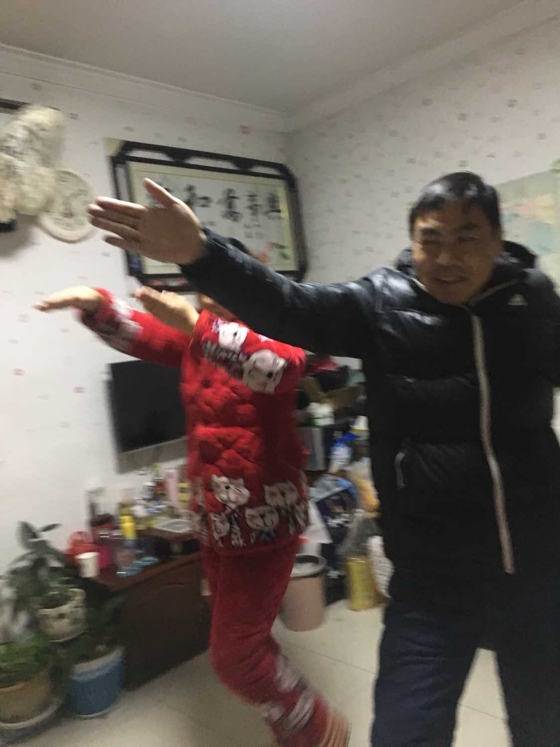昨天晚上,让爸爸教姐姐练了几式太极,还有模有样的,哈哈哈哈。