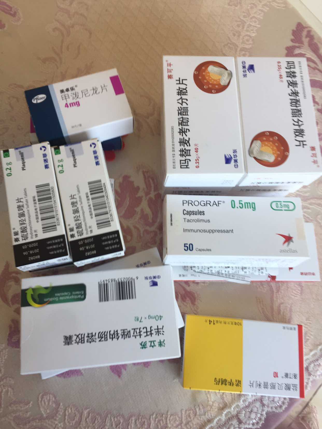 你跟我吃的药好多都一样啊,除了羟氯喹和胃药我不吃,其他的我都有