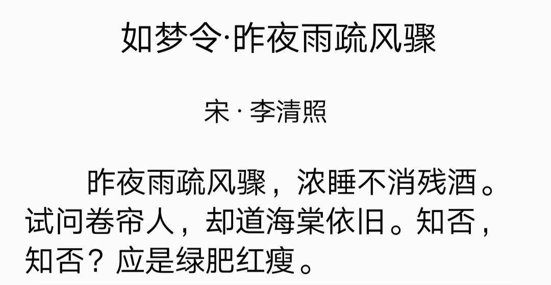 也追了一下剧没追完,不过还是在闹哄哄中萃取点什么,“女子无才便是德”被纤纤弱女明兰驳中…… 剧名取才于李清照的【如梦令】昨夜雨疏风骤