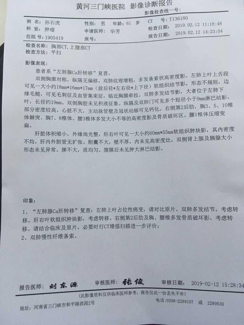 妈妈患肺癌已经有三年了,这三年来一直在接受治疗到现在,下面是妈妈检查以及治疗的过程。2010年10月,妈妈体检出肺癌IV期,纵隔淋巴转移,肝部转移,去省肿瘤医院复查,做了PET-CT,结果一样,省肿瘤
