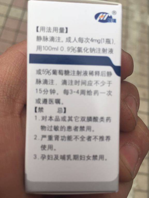 唑来膦酸有下颚骨坏死的副作用,尤其是拔过牙的位置。而有临床试验表明,三月一次与四周一次相比,疗效相当,而副作用大大降低!