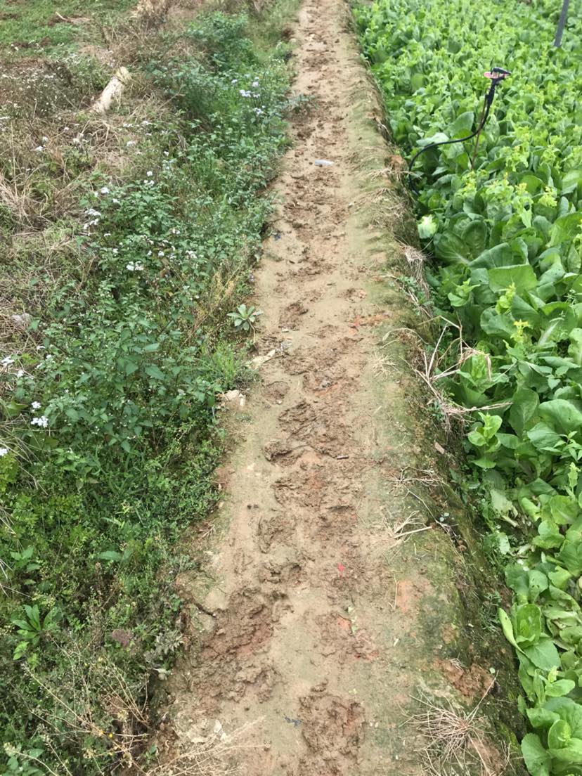 走在田间泥泞的小路上