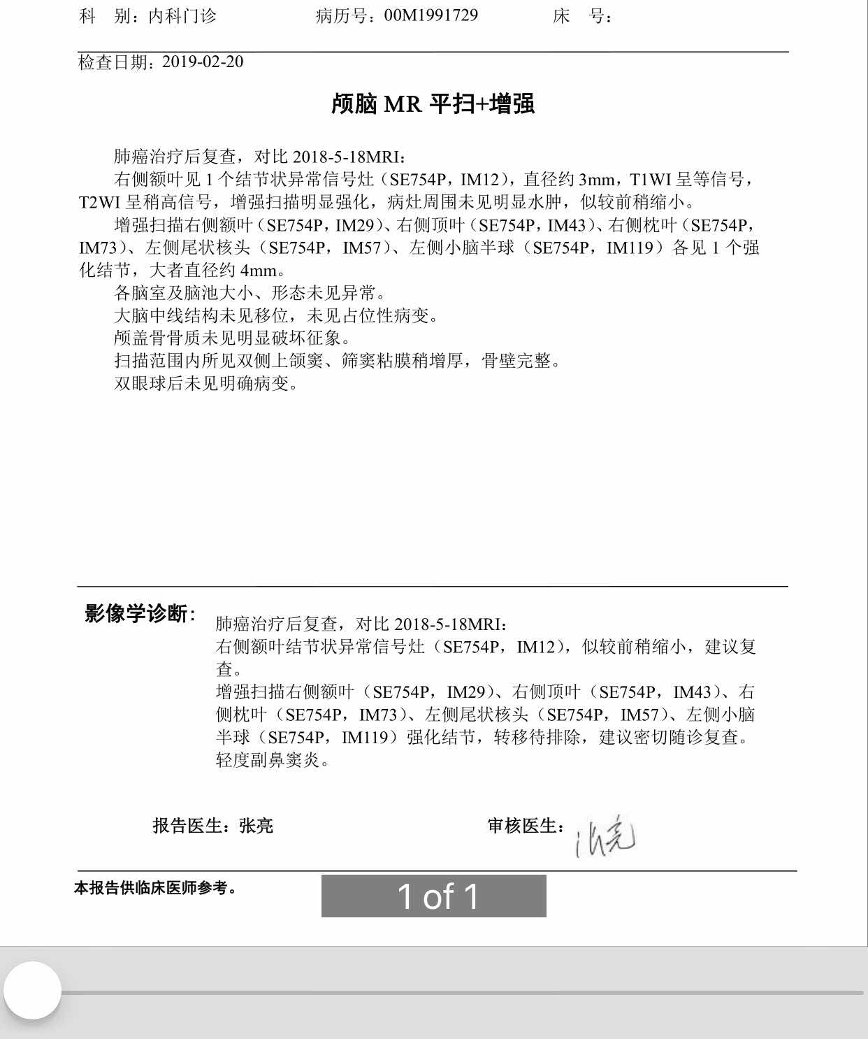 CT显示肺部挺好的,脑部结节是新增的吗?