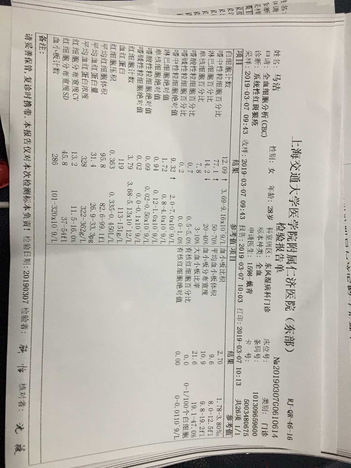 z艳白细胞有点高,其余都挺好的啊。我也是在这个医院,不过我看的是叶霜
