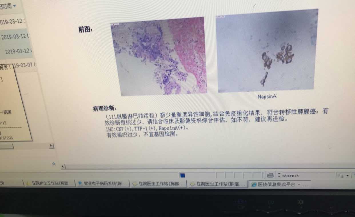 陈波医生不纠结骨转的问题,一骨转标本不适合基因检测,要脱钙。二有没有骨转不影响目前治疗。即便没有骨转,但因为双侧淋巴结都可疑转移,目前也暂不考虑手术。也是希望有效的药物治疗后,降低分期后持续一段时间确认降低肺的分期能维持再考虑手术。此为新辅助治疗。患者好像是在我们医院就诊的,为保持团结,切不可向首诊医生说有向我咨询过。一些人多次向领导反应我在网上给人咨询,说我是违法的,要求医院禁止我。切不可生事端。