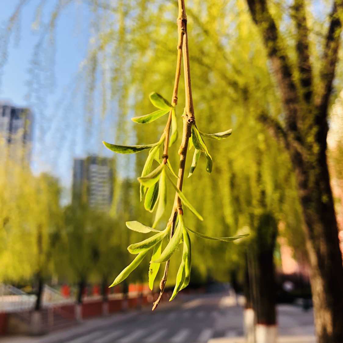 下午睡了一个多小时,醒来已近16点,两位女同事约我去吃饭,顺道回单位给学生送了一把钥匙。走在满是阳光的路上,垂柳嫩芽初抽,枝条随微风飘动,拍了照片,真想时光静止在这一刻。