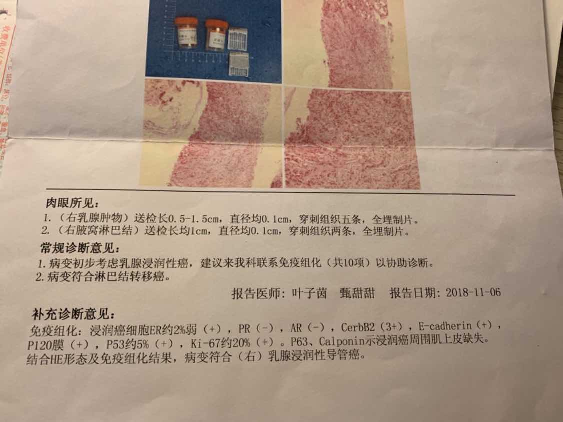 我33岁,已婚,末育,去年11月份查出乳腺癌,现在在积极治疗中。