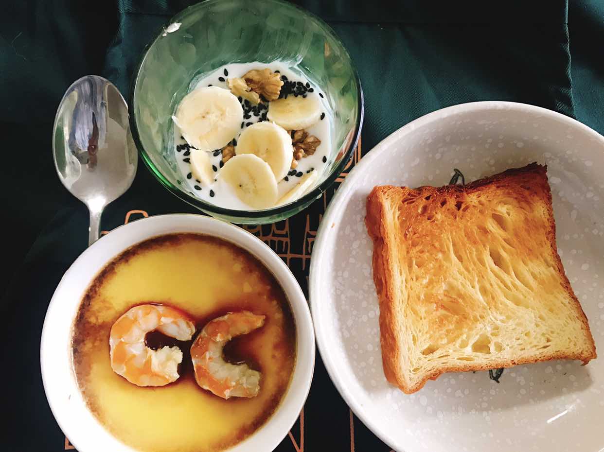 鸡蛋羹 两只海虾 一点酱油