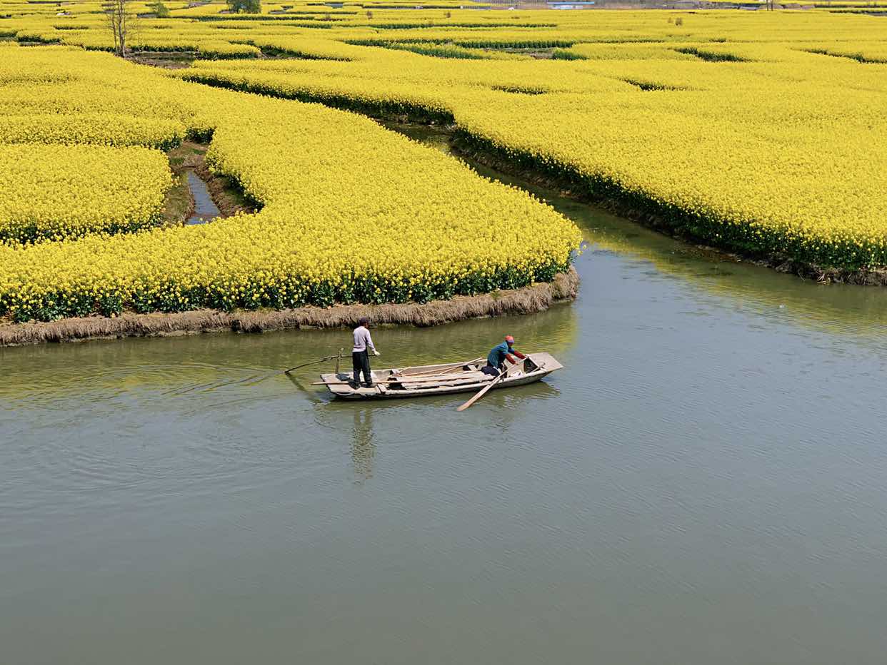 君看一叶舟,出没菜花深处。