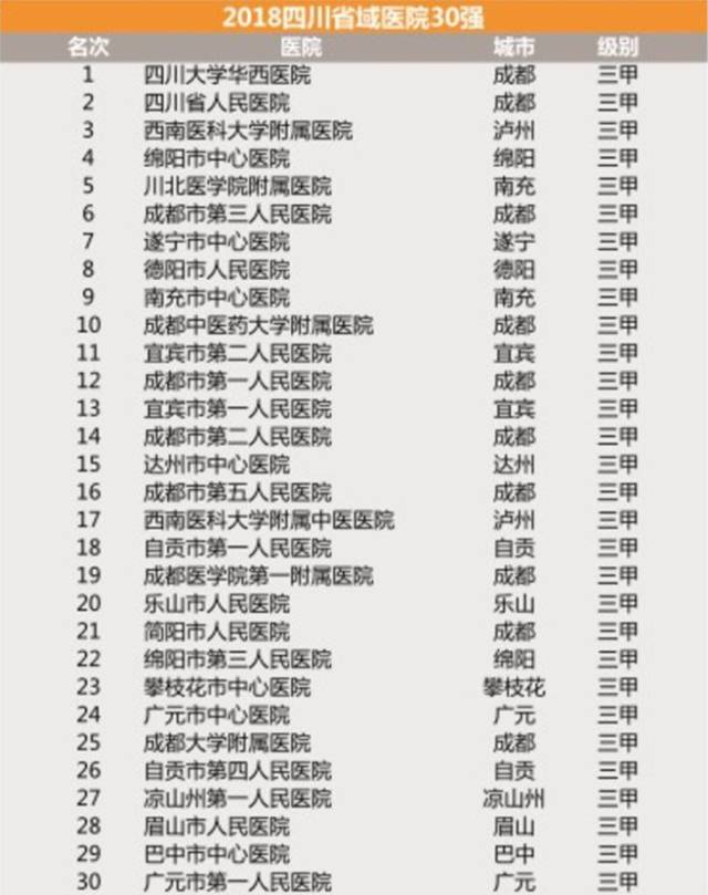 《医院蓝皮书(2018-2019)》2018届各省医院30强
