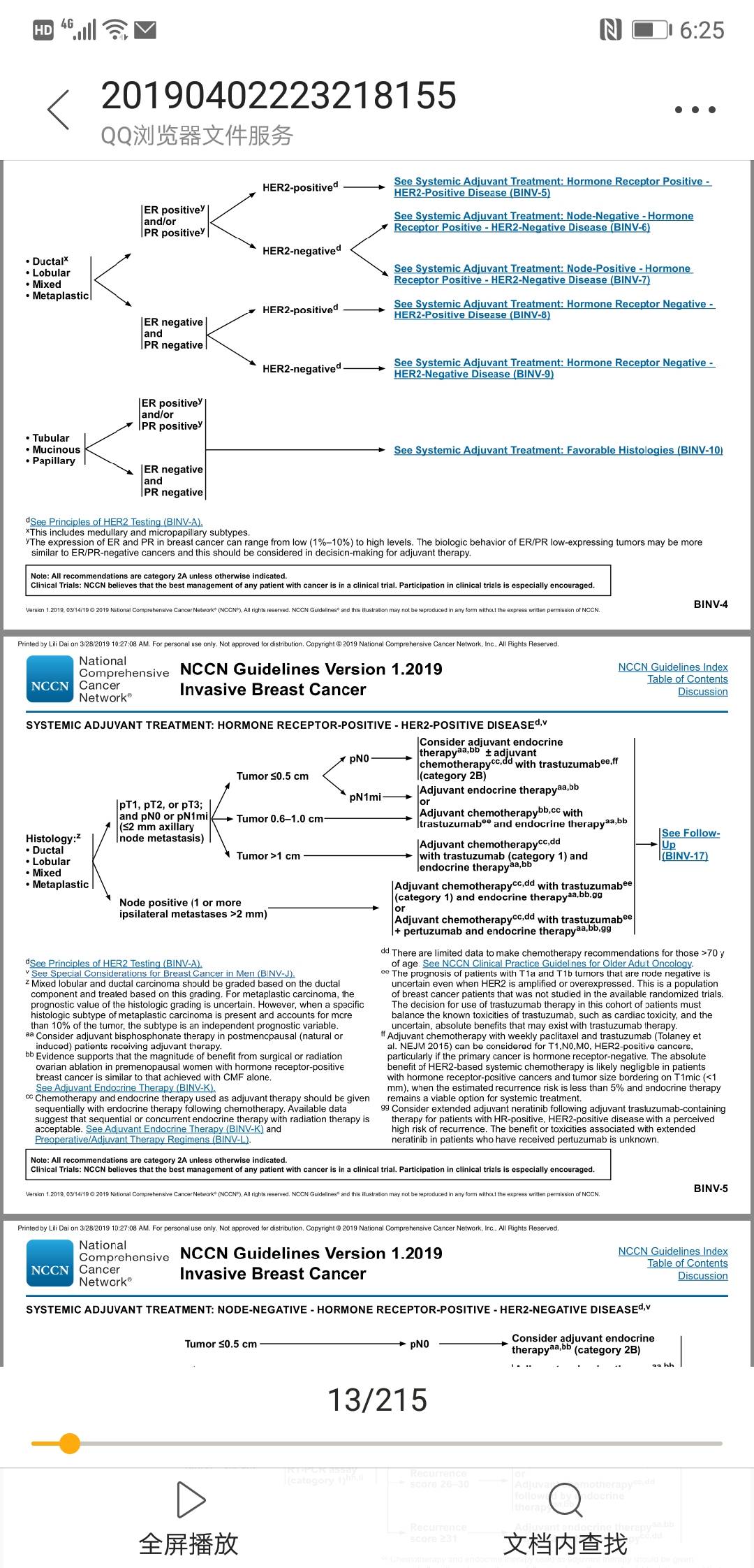 下图是美国CNNC乳腺癌治疗指南中关于三阳型乳腺癌的治疗标准,淋巴结阴性的仍然只建议化疗加赫赛汀,淋巴结有转移的才建议化疗加赫赛汀加妥珠单抗,由于妥珠单抗12年先在美国上市,我还是更愿意相信美国CNNC的用药推荐,由于一直挂不上江主任的号,不再纠结,下周去做单靶向