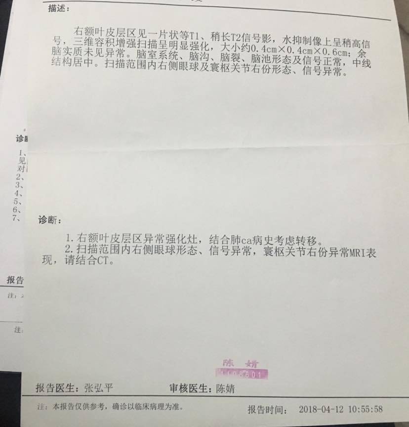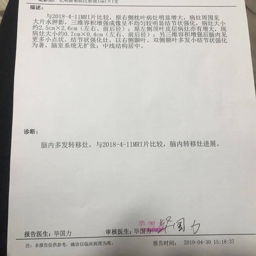 转移灶进展,就是易瑞沙不入脑,肺部挺好的!