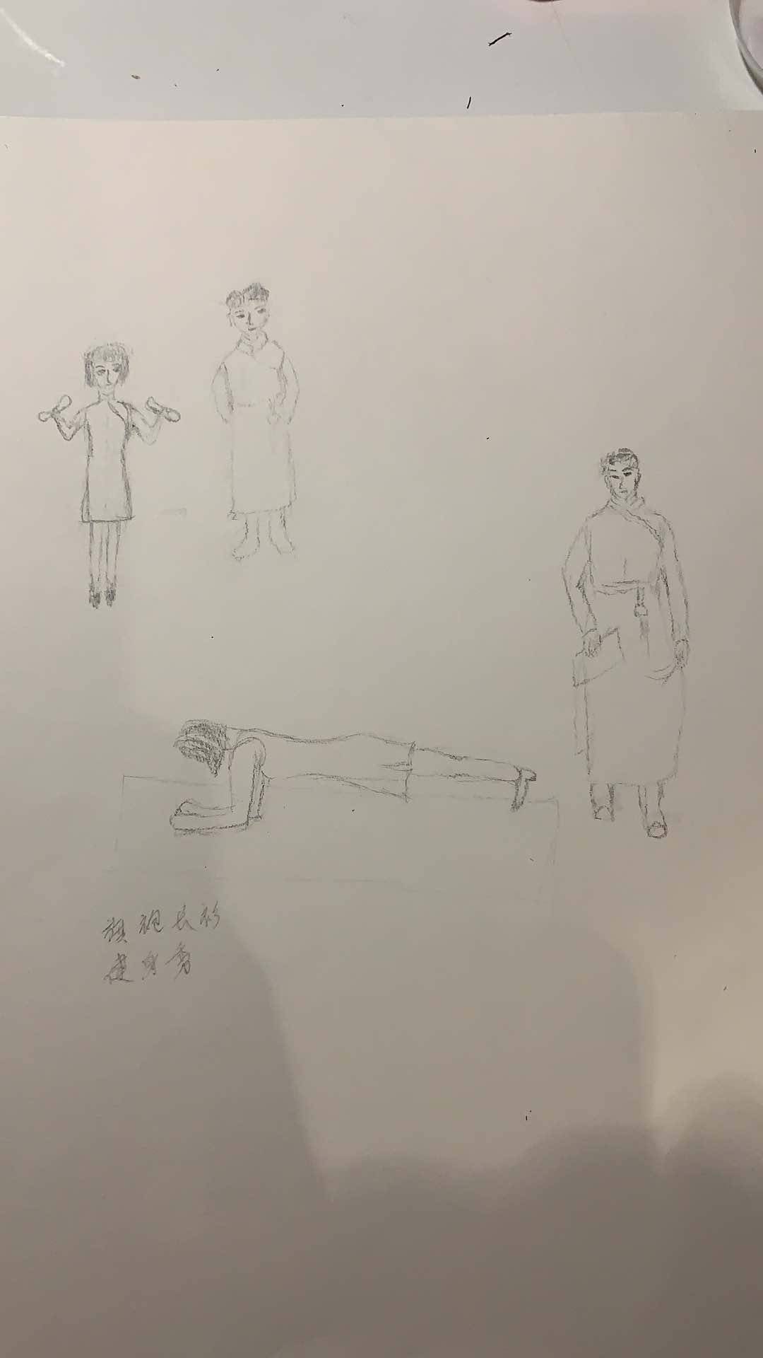我师傅最近训练时伤了腰,我好几天没去上课,今天他要坚持给我上课,但我不忍心,就和他说再逼我,我就穿着旗袍去,他想象不出穿着旗袍怎么健身,于是我画了一个草图给他看
