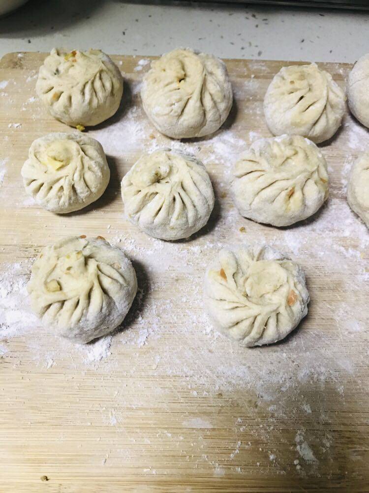最近捣鼓做面食,今天第一次做包子,还捏得像那么回事,素馅的,粉条香菇胡萝卜豆皮鸡蛋,用随和姐姐的全麦面粉做的,老公孩子都说好吃,听不得表扬,这会命令老公给婆婆送几个过去了,哈哈哈哈