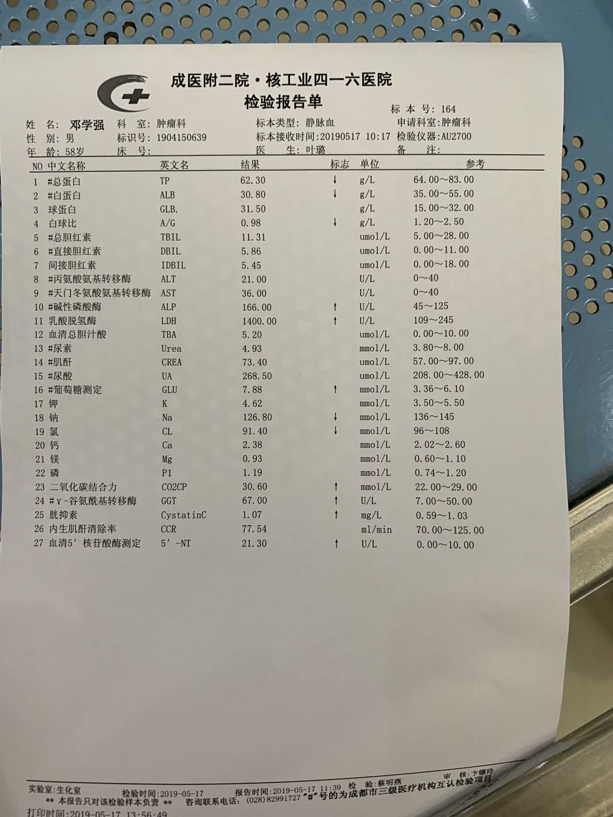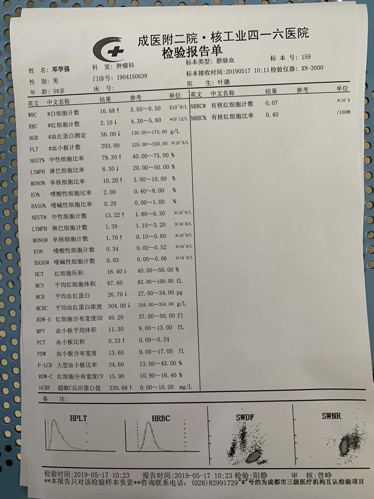 下面两张图是5月17日的查血