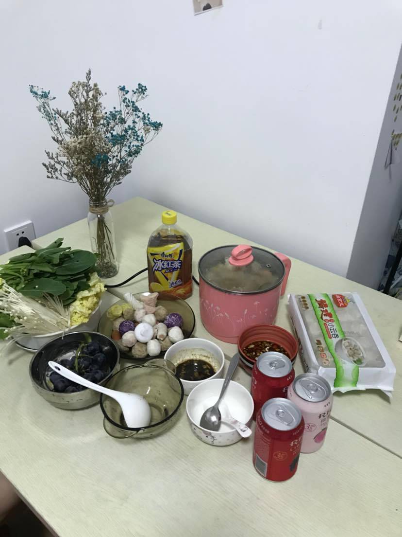 8点钟回到宿舍,舍友才开始吃饭,开启了房间空调自助小火锅模式