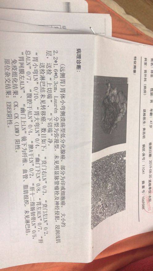 我是低分化部分印戒细胞,弥漫型,IB期