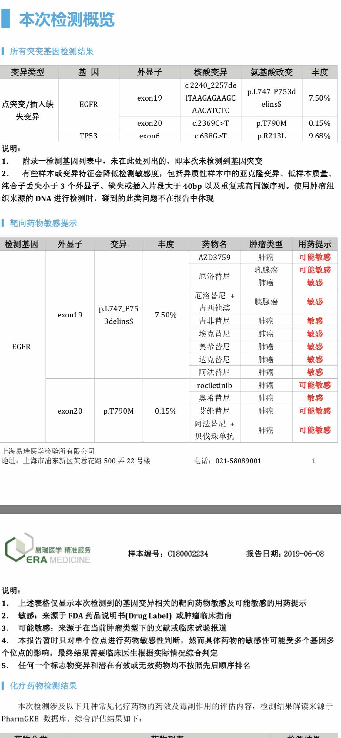 大家看一下是否可以继续吃奥希替尼,母亲吃了二十天了基因才出来谢谢大家