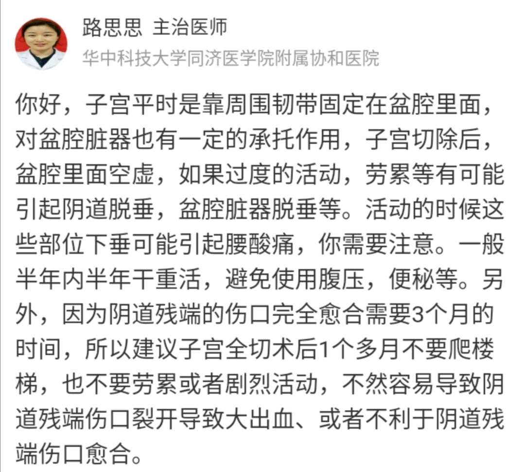 腹腔镜子宫切除手术,3个月内不能上楼梯,不能提3斤以上重的东西,不能下蹲,不能过夫妻生活