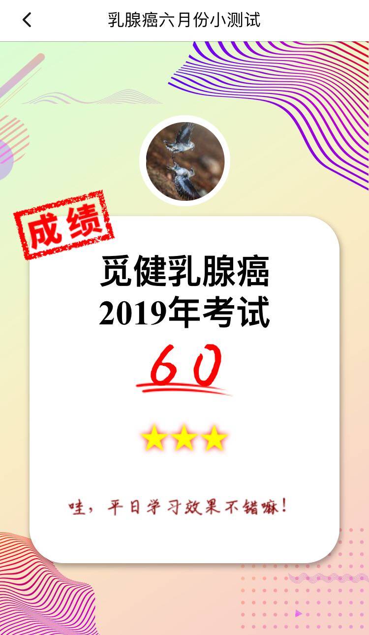 今天突然发现有觅健竟然有考试,痴迷于考试的我手残的戳了考题一下下,迷迷瞪瞪的看见哪个选项顺眼就选了哪个,这个就是传说中的全是蒙滴呀……
