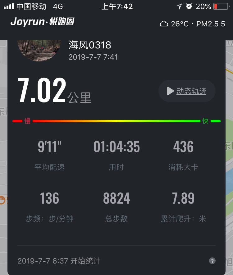 40分钟20秒顺利完成目标,全程除了患侧或许是因为手术时置入了一重的支架原因,感觉像烀了块棉花一样闷热,其他无任何不适,慢跑结束后又溜达了2KM身上的汗水已经完全消失,于是做了简单的拉伸后回家吃饭、送儿子上课去。