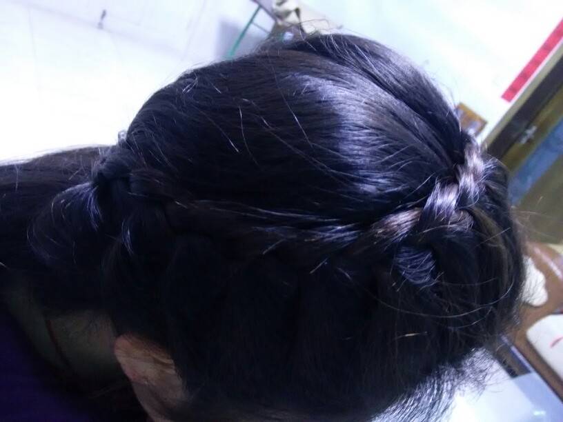 闲着没事,老妹学编发,拿我练手呢!